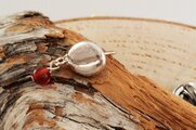 シルバー製の珈琲豆ピンズ、赤い珈琲の実(天然めのう)が揺れる、