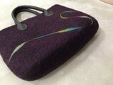 羊の原毛を、お湯と洗剤と手の圧縮によって縮絨させるハンドメイドのフェルトバッグ。