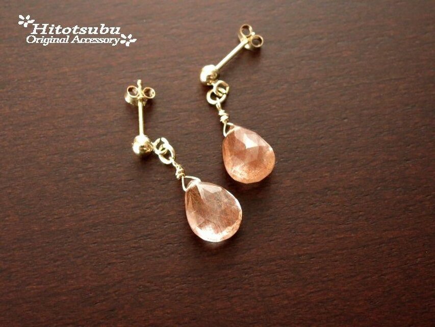 宝石質オレンジルチルクォーツ一粒ピアス。