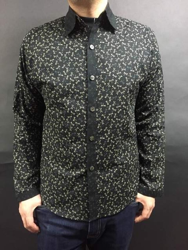 長袖和柄シャツ(蜻蛉紋様)衿前立て裏使い
