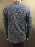 新作手作り長袖和柄シャツ(蜻蛉紋様)紺