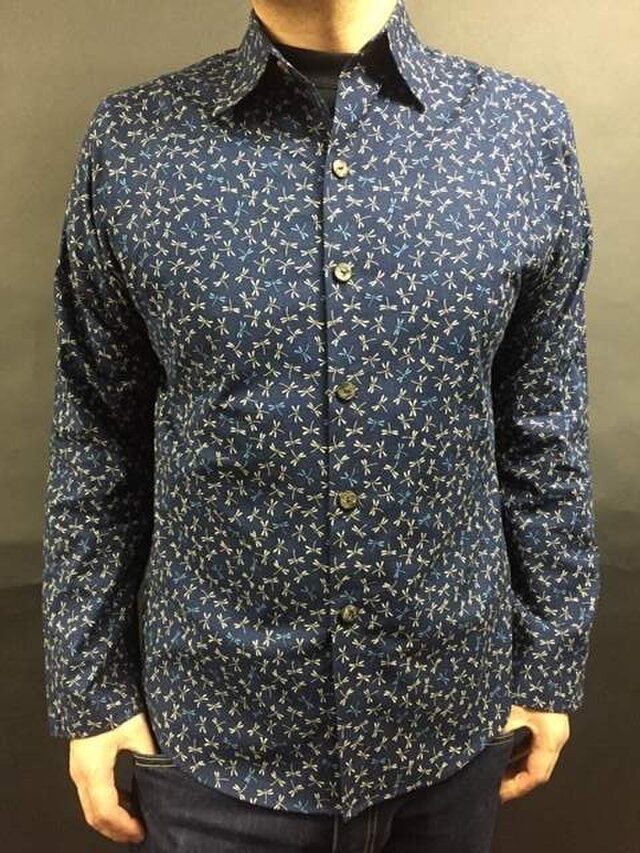 しっかりした生地に蜻蛉紋様が描かれた粋なシャツ