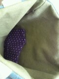 中は落ち着いた茶色に、パープルのポケットが一つ付いています。