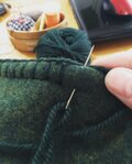 ポケット口、ストール周りは、ブランケット ステッチを施しています。
