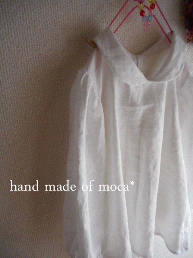 【受注製作/6.5再販売】W44/小さいサイズ/リネン後ろボタン襟付きブラウスプルオーバー★オフホワイト