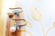 光沢を含んだ真っ白な淡水パールに、涼しげなブルートパーズを添えました。