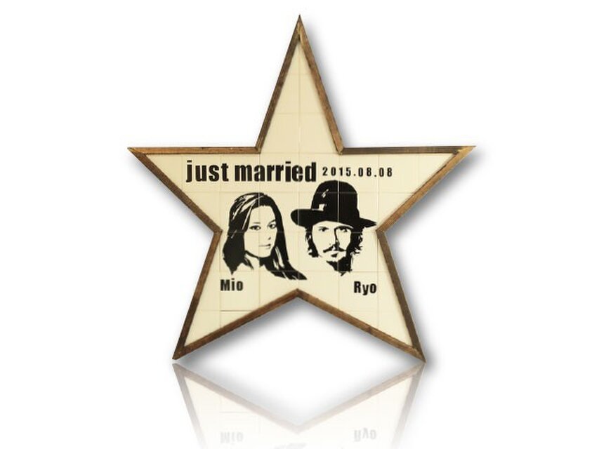 星型の額縁は、タイル仕上げにあわせて専属の職人がひとつひとつ丁寧に仕上げ、木本来の温かみのある仕上がりになりました。