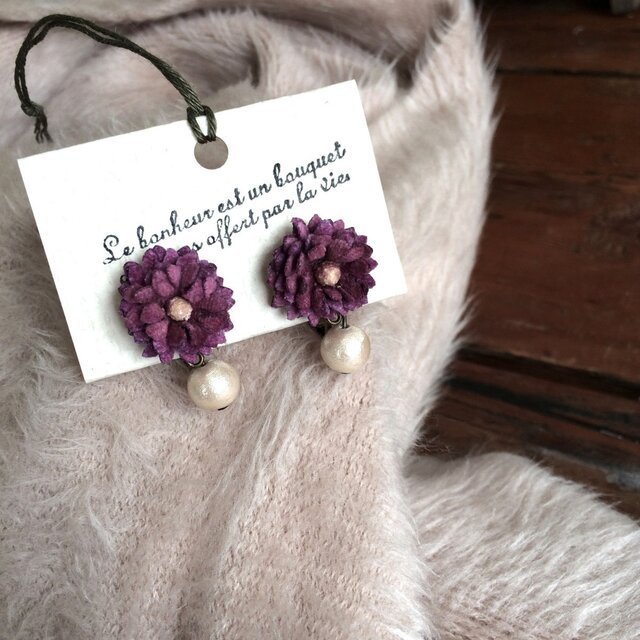 ユラユラ揺れるコットンパールのイヤリングを作りました。