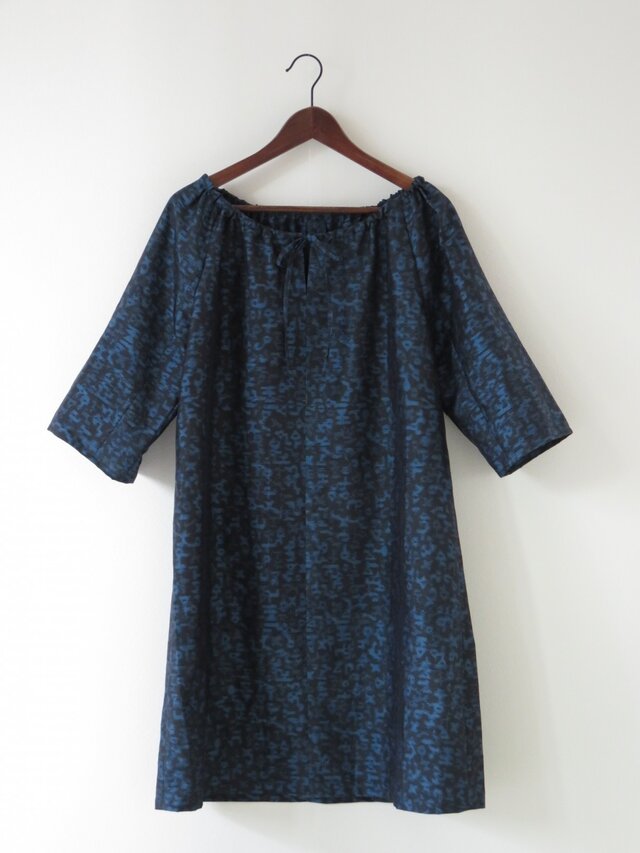 デザインは首もとのりぼんを絞る、たっぷりとしたチュニックワンピースデザインです。