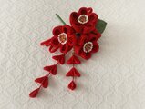 ちりめんで制作したつまみ細工の梅三輪の髪飾りです。
