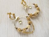 フープにガラスのビーズボールとチェコガラスビーズを通しています。