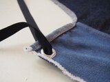 インディゴデニム生地に 制作過程に排出されたデニム生地等をツギハギ