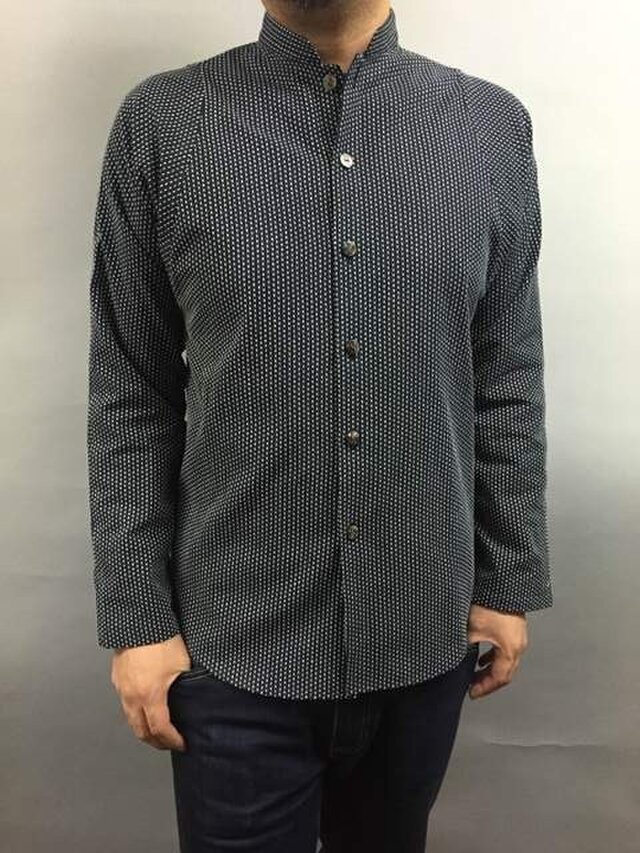 厚手のしっかりした生地に縞刺子が施された粋なシャツ。