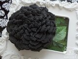かぎ編みの薔薇モチーフを二枚重ね合わせた、両手に乗るサイズのポーチです。