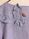 お洗濯は、蛍光剤の入らない洗剤を使用頂き、洗濯機の場合は、裏返してネットに入れて下さい。脱水を軽くして刺繍部分を整えて陰干しをお願い致します。