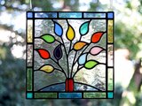 カラフルなリーフモチーフのステンドグラスパネルです。