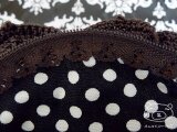 画像③:内布はルシアン生地のドット柄ブラックです。18cmのファスナーで開口部は広く、見えても可愛いレースタイプを使っています。