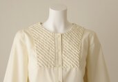 手芸の世界ではポピュラーなスラッシュキルトをヨーク飾りにあしらったブラウスです。
