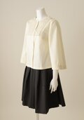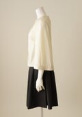 ボディはミニマルに徹し、ノーカラーのフレアスリーブ。