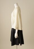 ボディはミニマルに徹し、ノーカラーのフレアスリーブ。