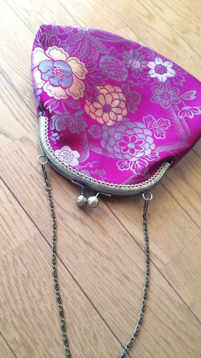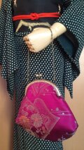 古布の状態の良いところ・柄のきれいなところをとって、がまぐちバッグをつくってみました。
