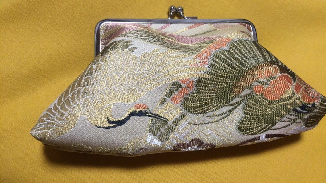 ★がまぐち・角型 大 丸帯地 鶴柄★