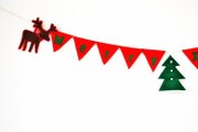 三角フラッグにロゴを入れて中央にツリー、両端に大人気トナカイが付いた可愛くてカラフルなクリスマスガーランドになっています。
