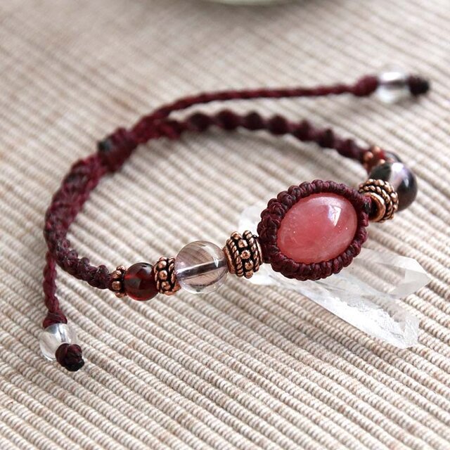 こちらは、高品質のインカローズとバイカラーのアメトリン、ガーネットを使ったブレスレットです。