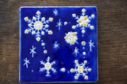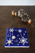 雪のような、星のような結晶を、濃紺の釉薬に描きました。