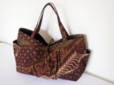 トートバッグ型ですが、タックでふっくらさせ、まち幅を広くしてあるので、収納力がありながらも可愛らしい形になっています。