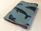 くじらが泳いでいるかわいい柄のリネンの生地です。
