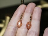 透明度の高いベースにキラキラと輝く内包物が映えるトップクオリティのサンストーンを使った一粒ピアスです。