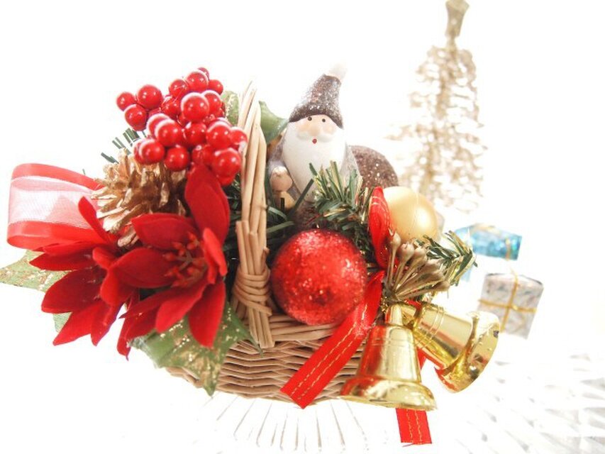 待ちきれないでこんな可愛いクリスマスミニカごアレンジをつくりました。