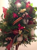 杉は生花です。クリスマスまで保つには、杉の部分にかる〜く霧吹きをして下さい。