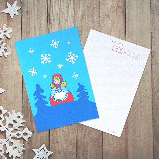 用途選べるポストカード【冬の森ガール】4枚セット