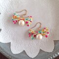 リバティプリントを使った小さなリボンと、10㎜のコットンパールを組み合わせたピアスです。