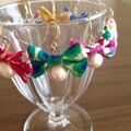 リバティプリントを使った小さなリボンと、10㎜のコットンパールを組み合わせたイヤリングです。