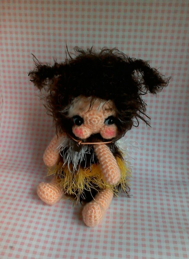 ふわふわの毛糸で編んだ着ぐるみ風の女の子です。