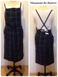 92cm丈斜めスリットバッククロスエプロン/リネン先染めチェック(大きめ柄)