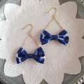 リバティプリントを使った、リボンとチェーンのピアスです。