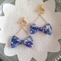 リバティプリントを使った、リボンとチェーンのイヤリングです。