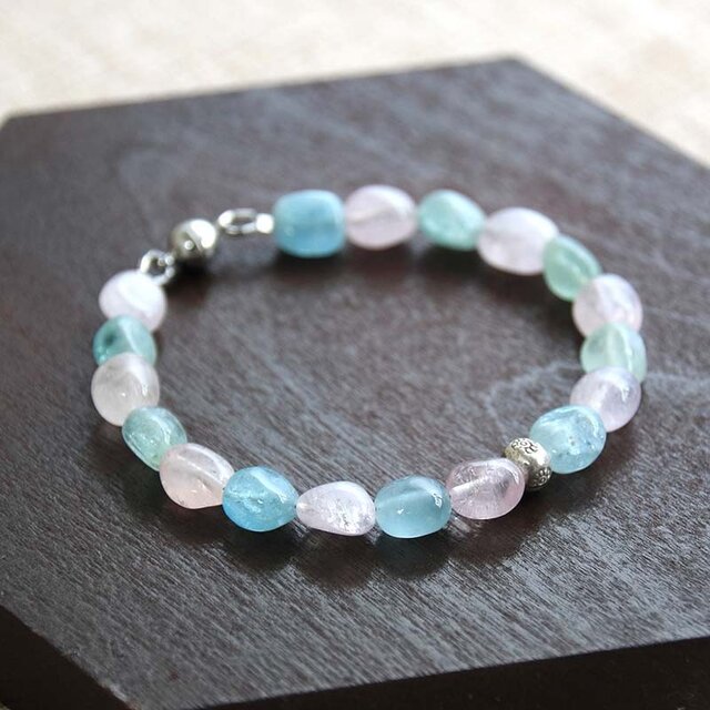 こちらは、キャンディーカラーがとても可愛らしい、高品質なベリルを使ったブレスレットです。