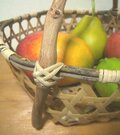 果物などを入れておくのにぴったりな、竹とその他山でとれた素材でつくった一品もののかごです。