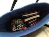 ブルー系の多彩なあじさいを咲かせたような模様のベーシックなトートバッグ。