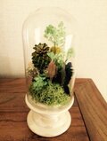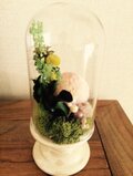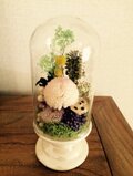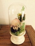 上のガラスドームは取り外し可能ですが、1度外してしまうと再度かぶせる時に花たちをうまく納めるのは難しくなりますのでご注意ください。