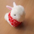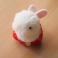 ちいさなぬいぐるみ白うさぎ*赤いストールすわり*菊