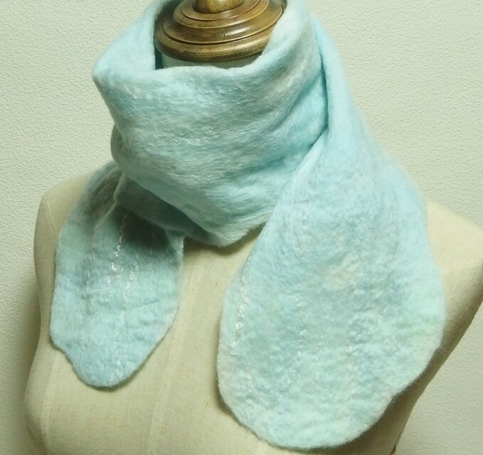 羊毛フェルトで作った、とっても軽くて暖かなマフラーです。