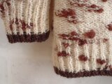 編むとランダムにチョコレート色のふわふわウールがぽこぽこと顔を出し