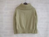二目ゴム編みの大きなタートルネックがまるでスヌードみたい。