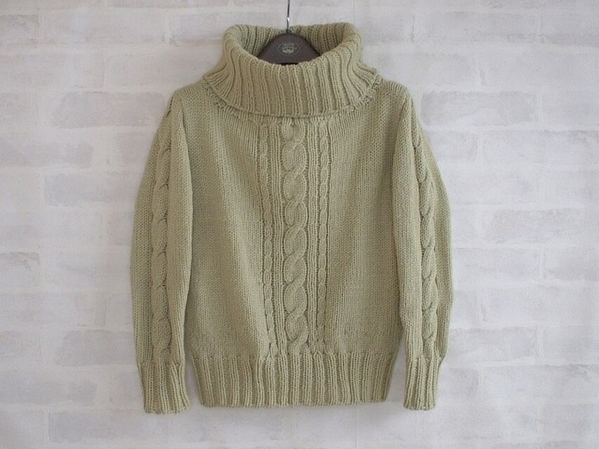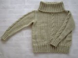大小のケーブル編みを身頃の真ん中にどんと、袖にも大きなケーブル編みを入れました。
